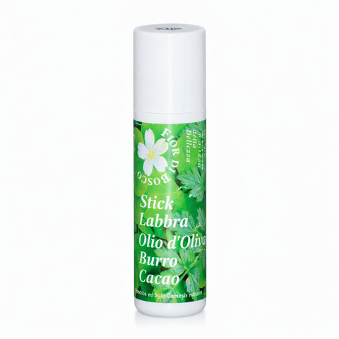 Stick labbra prodotto con oli e cere pregiatissime quali Olio di Jojoba, Olio di Mandorle, Olio di Oliva, Cera d'api e Cera di Candelilla.