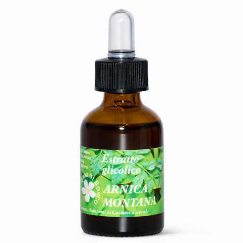 Si estrae dai capolini fioriti di questa pianta della famiglia delle composite. Le sue riconosciute proprietà sono antinfiammatorie e analgesiche. Ideale in caso di contusioni, ecchimosi, edemi, ematomi, distorsioni, dolori muscolari e articolari. Si consiglia l'applicazione solo su pelle integra.